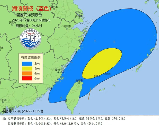 国家海洋预报台根据《海洋灾害应急预案》,于今天30日)下午发布海浪蓝色警报。受东海低压和冷空气的共同影响,预计12月31日上午到下午,东海南部、台湾海峡将出现2.5到4米的大浪到巨浪区;浙江、福建近岸